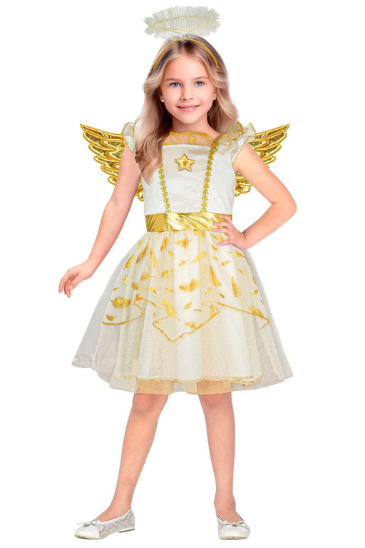 Vollständige Details anzeigenKostüm "Engel" für Kinder Weiß Gold | Kleid, Flügel und Heiligenschein