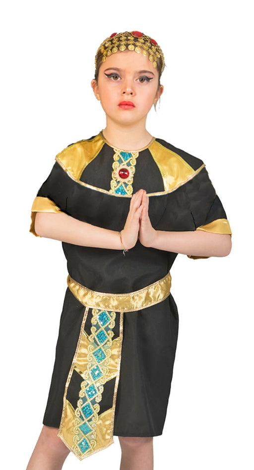 • Zauberhaftes Cleopatra Kostüm für Kinder • Lieferumfang: Kleid mit angenähtem Kragen und Gürtel • Material: 100% Polyester • Farbe: Schwarz / Tür...