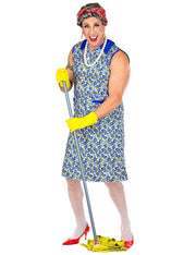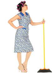 Ob Frau oder Mann, mit diesem Hausfrauen Kostüm werden Sie zum Hingucker auf jeder Party. Im Lieferumfang enthalten ist das knielange Kleid, welches mit einem blauen Blümchen-Muster bedruckt ist. Die Taschen und der Kragen des Kleides sind in demselben dunklen Blau gestaltet wie die Blumen. Ideal abrunden können Sie das Kostüm mit Accessoires, wie zum Beispiel einem Besen oder einem Kopftuch und Lockenwicklern. Ein wirklich lustiges Kostüm für Party und Fasching und natürlich für den Junggesellenabschied oder ein Männerballett.