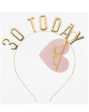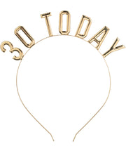 Stirnband aus Metall mit dem Schriftzug "30 Today" in Gold. Ein tolles Zubehör für den 30. Geburtstag.
