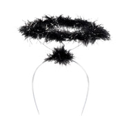 Sind Sie noch auf der Suche nach einem Heiligenschein für Ihr Kostüm? Dann haben Sie endlich den richtigen gefunden! Der Haarreif ist mit schwarzen Marabou-Federn und silber glitzerndem Lametta als Heiligenschein verziert, wodurch er super zum Kostüm als Schwarzer Engel passt. Der Kopfschmuck ist gerade zu Halloween und Karneval ein tolles Accessoire zu Ihrem Kostüm und auch fürs Fotoshooting ein stylischer Hingucker. Der Haarreif passt sowohl größeren Kindern, wie auch Erwachsenen.