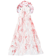 Mit diesem blutigen Schleier ergänzen Sie perfekt Ihr Witwen, Zombiebraut oder Geisterbraut Kostüm zu Halloween, Day of the Dead Festival und Fasching. Der Witwenschleier ist sehr schön verarbeitet. Ein langer Tüllschleier ist an einem Haarreifen befestigt und mit weißen Blumen verziert, welcher komplett mit Blutspritzern versehen ist. Ein wirklich schauriges Accessoire zu vielen Kostümideen.
