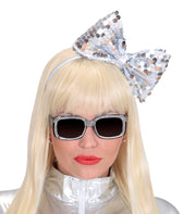 Mit diesem Haarreif vervollständigen Sie Ihr Disco Girl Outfit zu Karneval, Junggesellenabschied, Festival oder Geburtstag perfekt! Der glitzernde Haarreif ist mit einer großen Schleife besetzt, welche mit silbernen Pailletten verziert ist. Die Schleife ist ca. 10 x 17 cm groß. Er ist bestens geeignet für Karneval-, Motto- und Kostümpartys - lassen Sie Ihrer Kreativität freien Lauf!