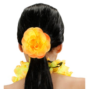 Blütenzauber für dein Haar – dieses wunderschöne Haargummi mit einer leuchtend gelben Blüte ist das perfekte Accessoire für sommerliche Outfits, Mottopartys oder einfach, um deinem Look eine romantische Note zu verleihen. Ob für eine Beachparty, einen Hawaii-Abend oder als elegantes Detail für eine Hochzeit – dieses Haargummi sorgt garantiert für bewundernde Blicke. Die Blüte ist aus hochwertigem, weichem Stoff gefertigt, wodurch sie besonders realistisch wirkt und einen natürlichen Look erhält. Ihre gelb-orange Farbgebung erinnert an tropische Sonnenuntergänge und verleiht jedem Styling eine frische, sommerliche Ausstrahlung. Dank der stabilen Befestigung sitzt das Haargummi sicher im Haar, ohne unangenehm zu drücken oder herauszurutschen.