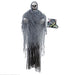 Mit diesem Grim Reaper erhalten Sie die passende Dekoration für die nächste Halloween Party. Der hängende Sensenmann ist in der Farbe Grau und hat eine Größe von circa 100 cm. Der Tonsensor aktiviert den beweglichen Kopf, die leuchtenden Augen und die gruseligen Geräusche. Mit dieser schaurigen Dekoration werden Sie sicherlich einigen Partygästen einen Schrecken einjagen.