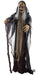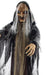 Die böse Zauberin ist ca. 160 cm groß, die knochige Hand stützt sich auf eine Gehstock in Optik eines knorrigen Asts. Bringt man sie in Action leuchten die gruseligen roten Augen, der Kopf mit den weißen, zotteligen Haaren und mit der großen Hakennase wippt zu Ihrem schaurigen Hexenlachen mit. Das zerschlissene Gewand mit der Kapuze rundet das grausige Gesamtbild der Standfigur perfekt ab.