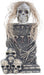 Der Dekostein ist mit Skelett-Teilen, Ornamenten, einem RIP und einem Totenschädel gestaltet. Der Grabstein in Kreuz Form wirkt durch seine Gestaltung schon sehr alt und authentisch. Die Dekoration in Stein Optik sieht richtig unheimlich aus! Der Clou ist jedoch der auf dem Grabmal thronende Totenschädel mit den leuchtenden Augen.