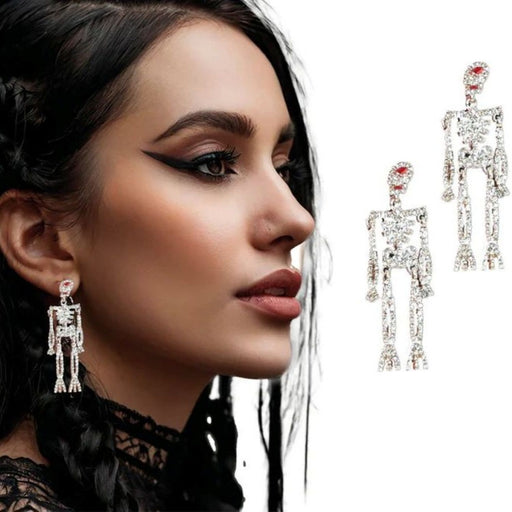 Vollständige Details anzeigenSkelett Ohrringe mit Glitzersteinen | Silber 5 cm