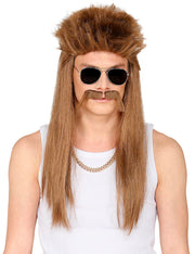 80er Jahre Perücke "Redneck" mit Schnurrbart | Rotbraun