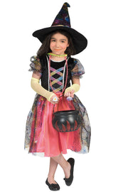 Das **Hexen Kostüm für Mädchen** ist so gestaltet, dass es die Fantasie anregt und Deine Tochter in die Rolle einer geheimnisvollen und mächtigen Hexe schlüpfen lässt. Das **schwarze Kleid** mit seinen **bunten Akzenten** ist der perfekte Mix aus traditionellem Hexen-Look und modernem Stil. Der **Spitzenbesatz** am Rock und die **Verzierungen** am Oberteil verleihen dem Kostüm eine geheimnisvolle Eleganz, die das klassische Hexenbild in einem neuen Licht erstrahlen lässt.