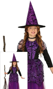 Kostüm Kid Hexe Spitze Kleid m. Hut 7-9J.