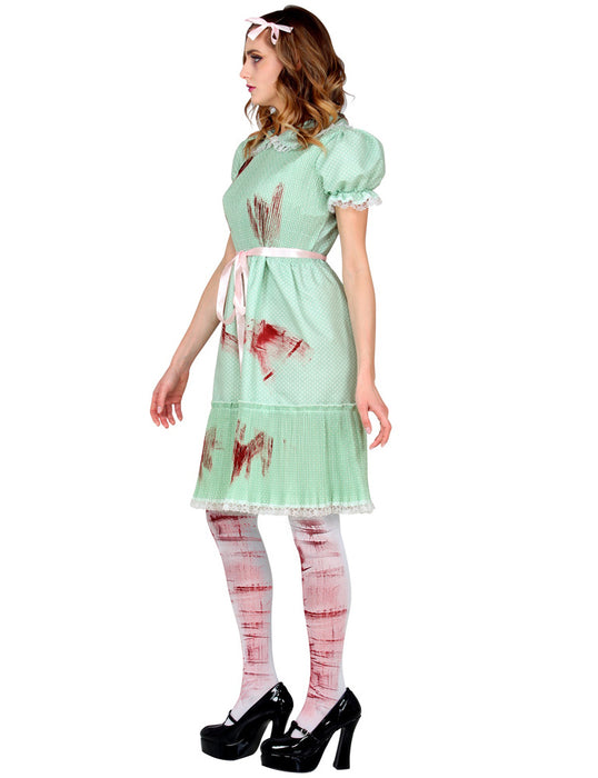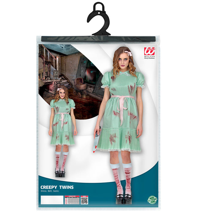 Sie suchen noch eine Verkleidung für eine Halloweenparty? Dann ist dieses Killerpuppen-Kostüm der Firma Widmann, genau das Richtige für Sie. Es besteht aus einem Kleid, einem rosa Gürtel und weißen, blutverschmierten Strümpfen. Das Kleid hat die Farbe Grün und Details aus Spitze am Saum, den Ärmeln und dem Kragen. Durch die Blutflecken, die über das ganze Kleid verteilt sind, wirkt das Killerpuppen-Kostüm sehr gruselig. Das Damenkostüm lässt sich noch ideal mit Accessoires wie zum Beispiel einem blutigen Messer, Kunstblut und Make-Up ergänzen. Mit diesem Outfit werden Sie der Hingucker auf jeder Kostümveranstaltung sein und so manchen Leuten einen Schrecken einjagen.