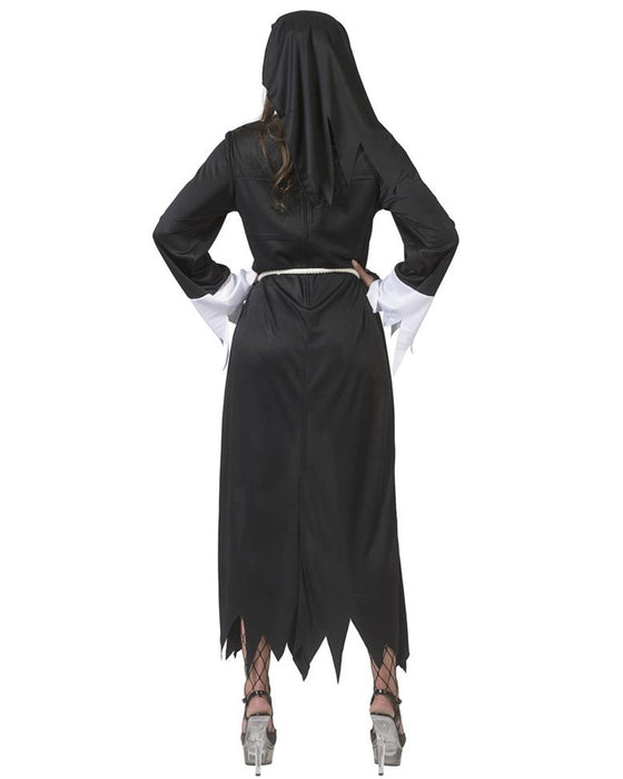 Mit unserem auffälligen Kostüm "Luzia" verwandeln Sie sich in eine teuflische Nonne. Erschrecken Sie Ihre Mitmenschen zu Halloween und auf der Horrorparty mit dem dreiteiligen Kostüm, bestehend aus Kleid, Bindegürtel und Nonnenhaube. Der Fetzenlook und Blutflecken geben dem Outfit einen gruseligen Charakter. Ergänzen Sie unser aufregendes, schwarzes Nonnen-Kostüm noch mit passendem Make-up und einem Kreuz und begeben Sie sich so perfekt gekleidet auf die nächste Vampir-Party!