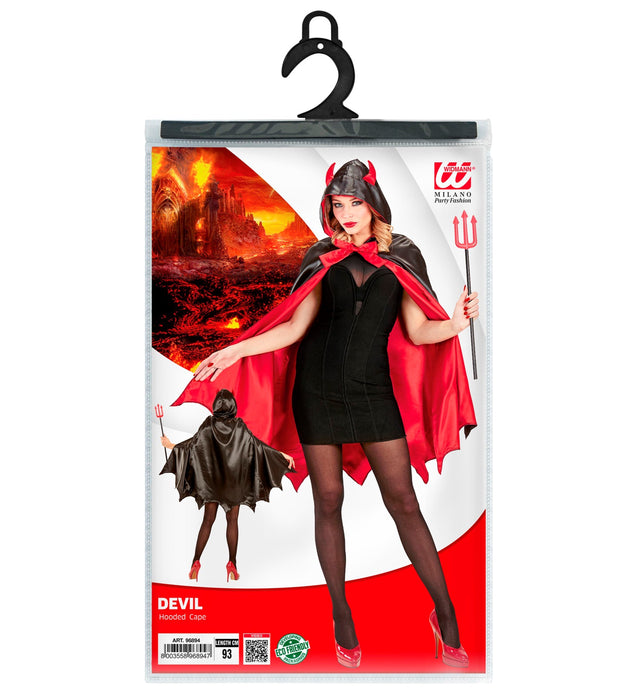 Teufelsumhang mit Kapuze für Damen | Teufelskostüm Schwarz Rot