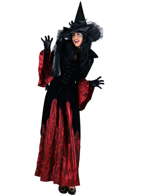Hexen Kostüm "Halowina" für Damen | Langes Kleid - Schwarz Weinrot