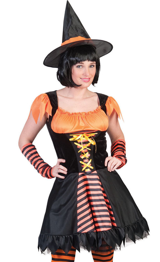 Vollständige Details anzeigenDamen Hexenkostüm "Hazel" - Schwarz Orange | Kostümkleid und Hexenhut