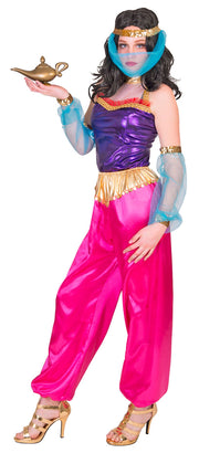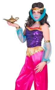 Ob als Wüstenprinzessin, Haremsdame, Bauchtänzerin oder Bollywood oder Orient Schönheit - mit diesem märchenhaften Kostüm verbreiten Sie gleich einen 1001 Nacht Flair und werden so manchem zu Fasching und Länder Orient Mottoparty den Kopf verdrehen. Auch Tanzgruppen können sicherlich bei Show Auftritten mit dem Ensemble punkten.