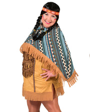 Indianerin "Cherokee" Kostüm für Damen mit Poncho | Kurz