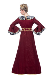 Majestätisch, elegant und voller königlicher Ausstrahlung: Mit dem Königinnenkostüm „Malika“ verwandelst du dich in eine edle Herrscherin vergangener Zeiten. Das bodenlange Kleid in tiefem Rot und Cremeweiß überzeugt durch seinen prachtvollen Schnitt und liebevolle Details, die an höfische Mode erinnern. Der kontrastreiche Mittelteil streckt optisch die Figur, während goldfarbene Borten und Zierkanten dem Kostüm einen luxuriösen Charakter verleihen.