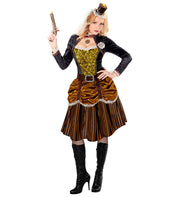 Sie sind auf der Suche nach einem Karnevalskostüm, haben bisher jedoch noch nicht das perfekte Outfit gefunden? Dann ist dieses Damenkostüm genau das Richtige für Sie. Das Steampunk Kostüm setzt sich zusammen aus einem Kleid, einem Gürtel und einem Mini Hut. Mit diesem Kostüm werden Sie zum Blickfang auf jeder Party.