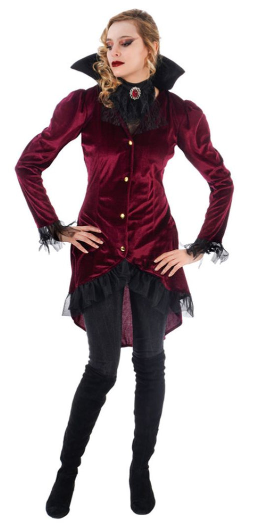 Vollständige Details anzeigenVampiress "Jasna" Kostümjacke und Jabot für Damen | Dunkelrot Schwarz
