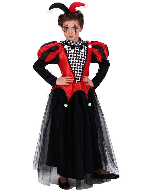 Vollständige Details anzeigenHalloween Kostüm "Miss Joker" für Mädchen | Pierrot Harlekin Kleid mit Haarreif