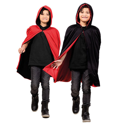Kostüm Kid Cape m. Kapuze Schwarz/Rot wendbar 115c