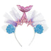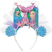 Der Haarreif ist mit einer funkelnden Meerjungfrauenflosse, glitzernden Seesternen und Muschelelementen verziert, die an die faszinierende Welt des Ozeans erinnern. Feine Tüllakzente in Meeresfarben verleihen dem Design zusätzliche Leichtigkeit und Bewegung. Durch die harmonische Farbkombination aus Blau- und Rosatönen mit funkelnden Highlights entsteht ein hochwertiger, fantasievoller Gesamteindruck.