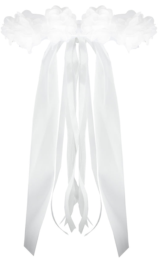 Vollständige Details anzeigenHaarkranz Kisha mit Bändern und Blüten - Weiß