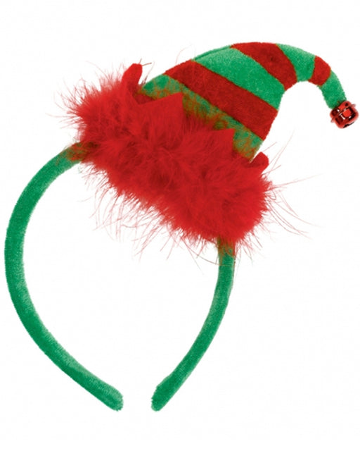 Vollständige Details anzeigenHaarreif "Weihnachtsmütze Elf" mit Glöckchen | Rot Grün