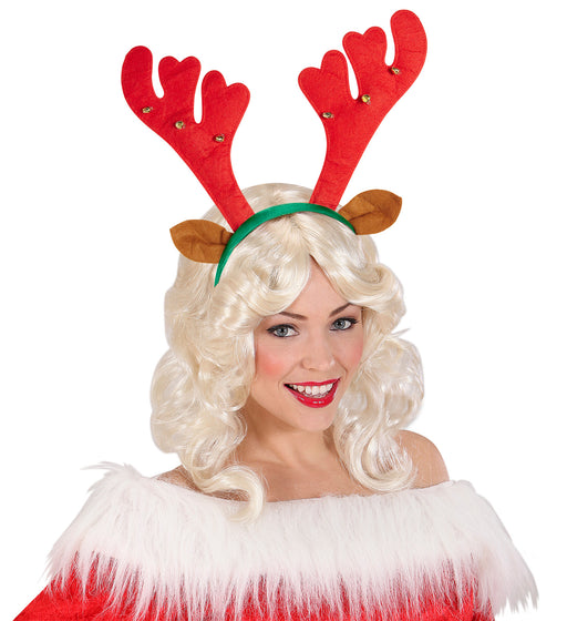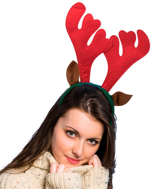 Vollständige Details anzeigenRentier Haarreif mit Geweih - Grün Rot | Tierkostüm Weihnachten