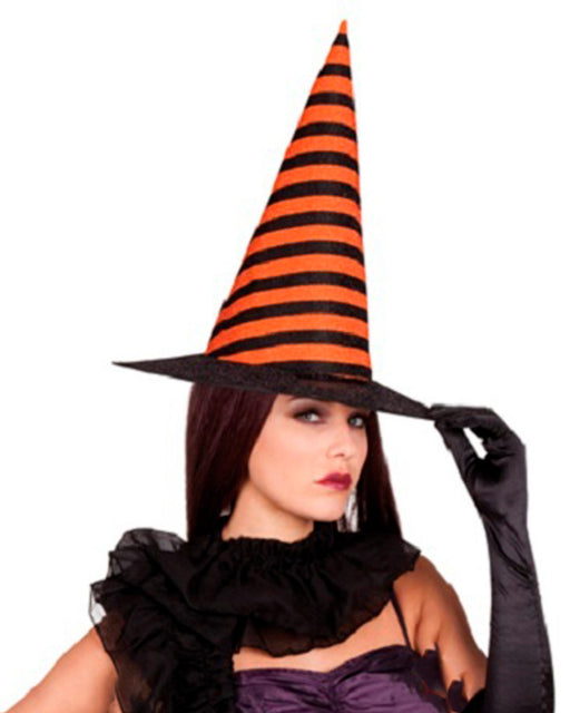 Vollständige Details anzeigenHexenhut "Lara" mit Streifen | Orange