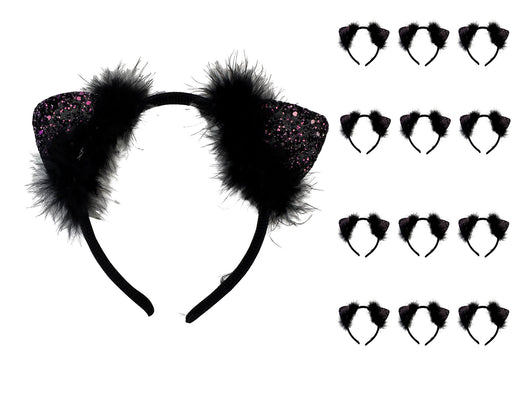 Vollständige Details anzeigenKatzenohren Haarreif mit Federn und Glitter | Schwarz 12er Set