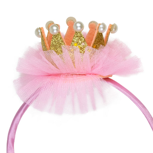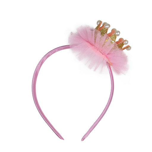 Vollständige Details anzeigenPrinzessin Glitzer Krone mit Perlen und Rüschen | Haarreif Rosa