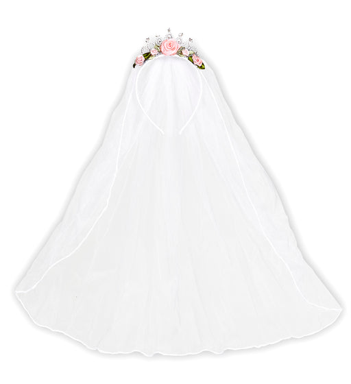 Vollständige Details anzeigenTiara mit Brautschleier und Rosen - Kopfschmuck 07063 | Weiß Rosa