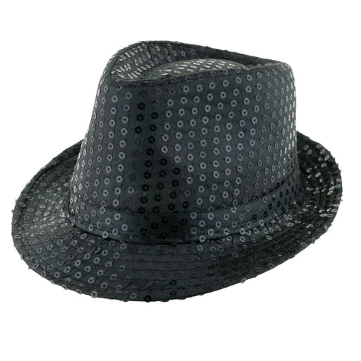 Glitzernder Popstar Hut mit Pailletten | Schwarz
