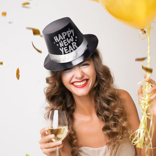 Die Partyhüte mit der Aufschrift Happy New Year sind das perfekte Accessoire für jede Silvesterfeier. Mit ihrem festlichen Design bringen sie sofo...