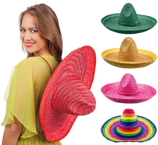 • Lieferumfang: Bunter Sombrero zum Mexikaner Kostüm • Durchmesser: ca. 50 cm • Material: Strohhut • Farbe: nach Wahl • Einheitsgröße für Erwachsen...