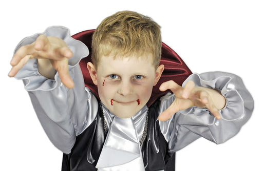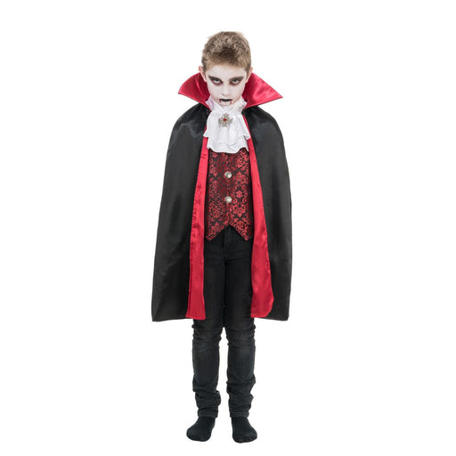 Vollständige Details anzeigenVampir Kinderkostüm mit Umhang und Jabot | Schwarz Rot