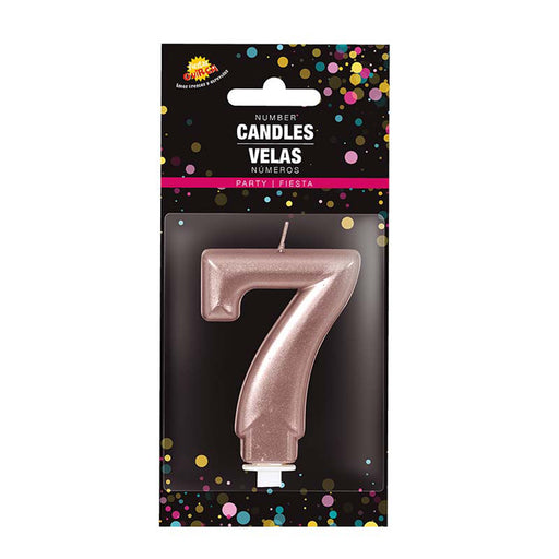 Vollständige Details anzeigenZahlenkerze Geburtstagskerze "Sparkling Celebrations" 9,3 cm | Metallic Pink - Zahl 7