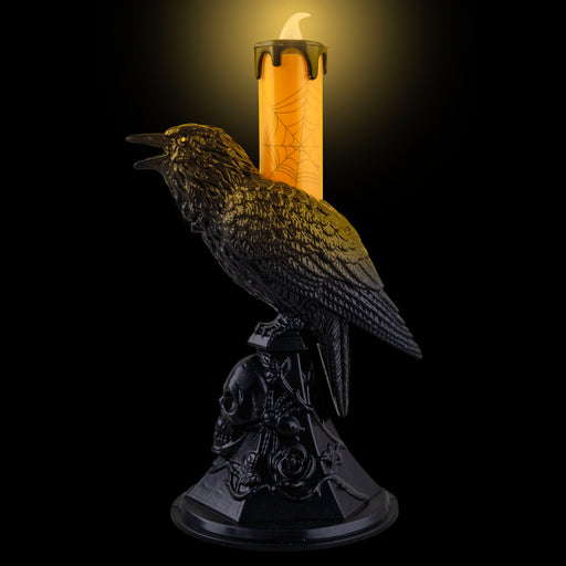 Vollständige Details anzeigenBeleuchteter Kerzenhalter mit schwarzem Raben | 18 cm