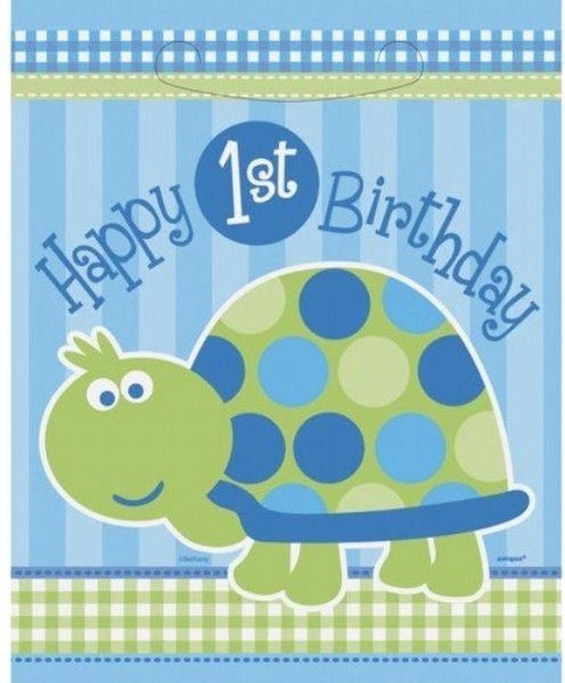Die fröhlichen Partytüten mit süßem Schildkröten-Motiv sind die perfekte Ergänzung zur Dekoration des 1. Geburtstags. Im praktischen 8er-Pack erhä...