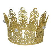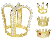 Die Kronen sind in verschiedenen Varianten erhältlich. Sie sind golden und mit Perlen oder Schmucksteinen verziert. Durch das weiße Gummiband können die Kronen ganz bequem fixiert und getragen werden.