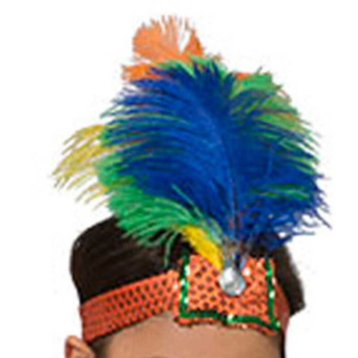 Das Highlight dieses **Brasilianerin Kostüms** ist der **passende Kopfschmuck**, der das Outfit perfekt abrundet. Der **Haarreif** ist mit **farbigen Federn** und **Glitter** geschmückt und sorgt für den letzten **tropischen Touch**. Die Federn schwingen bei jeder Bewegung mit und verleihen dem gesamten Kostüm eine besonders festliche und exotische Ausstrahlung, die den Look aus der Menge herausstechen lässt. Der Kopfschmuck sorgt nicht nur für einen authentischen brasilianischen Karneval-Look, sondern lässt Deine kleine Tänzerin wie eine **echte Samba-Königin** wirken!