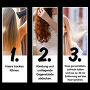 Das feine, gut deckende farbige Haarspray gut schütteln und entweder strähnenweise einsetzen oder das gesamte Haar einfärben. Es kann sowohl Echthaar als auch Kunsthaar wie z. B. Prücken damit gefärbt werden. Nach dem Gebrauch das Haarspray einfach wieder mit Haarshampoo auswaschen.