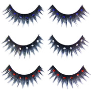Verzaubern Sie die Männer auf der Faschings- oder Mottoparty mit Ihrem atemberaubenden Augenaufschlag! Mit diesen auffälligen künstlichen Wimpern in Schwarz mit bunten Schmucksteinen intensivieren Sie Ihren Blick und ziehen dabei alle in Ihren Bann!