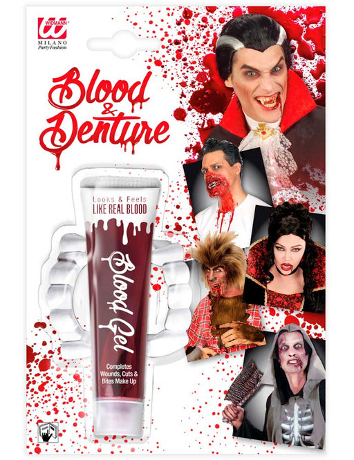 Vollständige Details anzeigenKunstblut in der Tube mit Vampir Gebiss - 28 ml | Halloween Dekoration Fakeblood Vampirblut