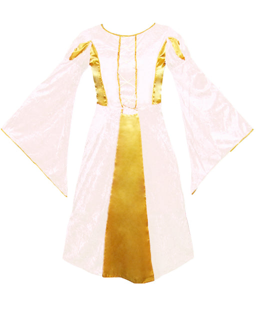• Zauberhaftes Engelskostüm für Mädchen • Lieferumfang: Langes Kostümkleid aus Samtmaterial • Material: 100% Polyester • Farbe: Weiß / Gold Verwa...