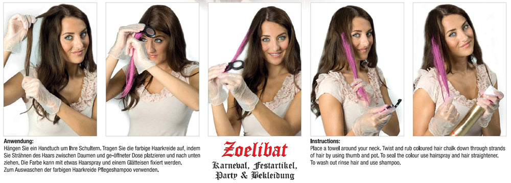 Haarkreide liegt nicht nur in der Karnevalszeit voll im Trend! Selbst Stars und Sternchen wie Lady Gaga, Christina Aguilera oder Avril Lavigne kreiden ihre Haare! Egal ob Strähnchen, nur das Pony oder die komplette Haarpracht, Ihre Haare werden durch die Kreide zu einem echten Hingucker!