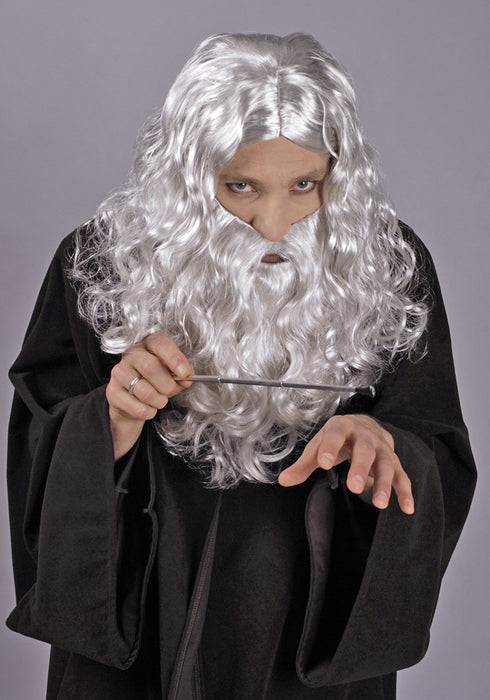Zauberer Perücke "Merlin" mit Bart | Silber Grau